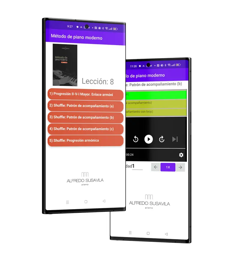 El Método de Piano Moderno es un sistema de formación estructurado que guía al alumno desde la iniciación hasta niveles avanzados del piano moderno. Está basado en la experiencia profesional y docente de Alfredo Susavila y propone un aprendizaje progresivo, sólido y musical, sin atajos.